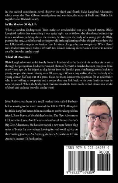In this second compilation novel, discover the third and fourth Blake Langford Adventures which cover the Tom Gibson investigations and continue the story of Paula and Blake's life together after Rachael's death. In The Shadow Of My Life When a London Underground Train makes an unscheduled stop at a disused station, Blake Langford realises that something is not quite right. As he follows the abandoned staircase up into a rundown building above the station, he discovers the body of a young girl. As Blake pursues the case, London's cruel streets provide little explanation of who the girl was or how she was killed until a surprise confession from his sister changes the case completely. When blood runs thicker than water, Blake is left with two women wanting answers and a brother in need of an alibi, but who can he trust? Wheel Of Deception Blake Langford returns to his family home in London after the death of his mother. As he sorts through her possessions, he discovers an old photo of her with a man he does not recognise from many years ago. As he begins to dig deeper into his family's past, conflicting stories lead to a young couple who went missing over 70 years ago. When a dog walker discovers a body of a young woman half way out of a grave, Blake has many unanswered questions for an undertaker who is not willing to cooperate and a corpse that may link back to his own family in ways he never expected. When the body count continues to climb, Blake needs to find closure in a world of death and violence but who can he trust?