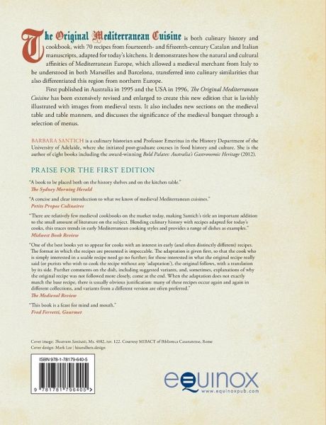 The Original Mediterranean Cuisine is both culinary history and cookbook, with 70 recipes from fourteenth- and fifteenth-century Catalan and Italian manuscripts, adapted for today's kitchens. Starting with the natural and cultural affinities of Mediterranean Europe, such that a medieval merchant from Italy could be understood in Marseille and Barcelona, it demonstrates the culinary similarities that differentiated this region from northern Europe. Originally published in 1995, this new edition has been extensively revised and enlarged by a third and is lavishly illustrated with images from medieval texts. It includes new sections on the medieval table and table manners, and discusses the significance of the medieval banquet through a selection of menus.