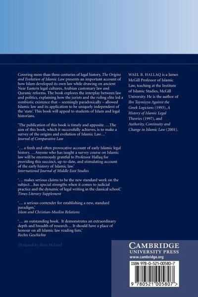 1. The pre-Islamic Near East, Muhammad and Quranic law 2. The emergence of an Islamic legal ethic 3. The early judges, legal specialists and the search for religious authority 4. The judiciary coming of age 5. Prophetic authority and the modification of legal reasoning 6. Legal theory expounded 7. The formation of legal schools 8. Law and politics: caliphs, judges and jurists Conclusion.