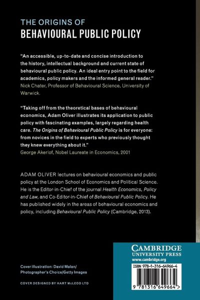 The use of behavioural science to inform policy is one of the main developments in the social sciences over the last several decades. In this book, Adam Oliver offers an accessible introduction to the development of behavioural public policy, examining how behavioural economics might be used to inform the design of a broad spectrum of policy frameworks, from nudges, to bans on certain individual behaviours, to the regulation of the commercial sector. He also considers how behavioural economics can explain and predict phenomena as a challenge to economists' assumptions around how people perceive time, utility and money. The book offers an intellectual foundation for all those concerned with behavioural public policy, from academics, undergraduate and postgraduate students with a diverse range of disciplinary perspectives, such as economics, political science, sociology and anthropology, to policy makers and practitioners working directly with behavioural public policy in their everyday working lives.