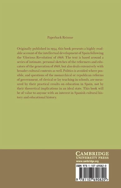 Originally published in 1934, this book presents a highly readable account of the intellectual development of Spain following the 'Glorious Revolution' of 1868. The text is based around a series of intimate, personal sketches of the reformers and educators of the generation of 1868, but also deals extensively with broader cultural contexts as well. Politics is avoided where possible, and questions of the monarchical or republican reforms of government, of clerical or lay teaching in schools, are measured by their practical results on education in Spain, not by their theoretical implications in an ideal state. This book will be of value to anyone with an interest in Spanish cultural history and educational history.