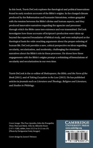 This book explores the cultural functions played in the sixteenth and seventeenth centuries by accounts of the Bible's origins. It investigates how these accounts were taken up beyond the expected boundaries of biblical study, and deployed as the theological basis for arguments about the proper ordering of human life.