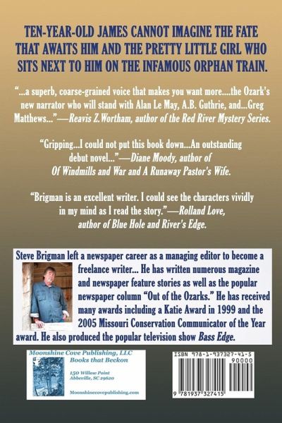 TEN-YEAR-OLD JAMES CANNOT IMAGINE THE FATE THAT AWAITS HIM AND THE PRETTY LITTLE GIRL WHO SITS NEXT TO HIM ON THE INFAMOUS ORPHAN TRAIN. "...a superb, coarse-grained voice that makes you want more...the Ozark's new narrator who will stand with Alan Le May, A.B. Guthrie, and of course, the above-mentioned Greg Matthews."-Reavis Z. Wortham, author of the "Red River Mystery Series." James is ten when he is taken from a New York orphanage and sent out west on one of the infamous orphan trains, meeting a pretty little girl on his journey who will one day become the core of his existence and the source of his deepest despair. "Gripping from the first sentence to the last-I could not put this book down...An outstanding debut novel from author Steve Brigman."-Diane Moody, author of "Of Windmills and War" and "A Runaway Pastor's Wife." "Brigman is an excellent writer. I could see the characters vividly in my mind as I read the story."-Rolland Love, author of "Blue Hole" and "River's Edge."
