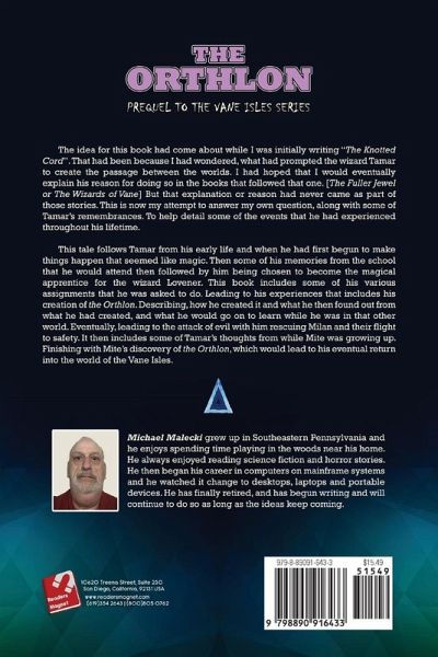 The idea for this book had come about while I was initially writing "The Knotted Cord". That had been because I had wondered, what had prompted the wizard Tamar to create the passage between the worlds. I had hoped that I would eventually explain his reason for doing so in the books that followed that one. [The Fuller Jewel or The Wizards of Vane] But that explanation or reason had never came as part of those stories. This is now my attempt to answer my own question, along with some of Tamar's remembrances. To help detail some of the events that he had experienced throughout his lifetime. This tale follows Tamar from his early life and when he had first begun to make things happen that seemed like magic. Then some of his memories from the school that he would attend then followed by him being chosen to become the magical apprentice for the wizard Lovener. This book includes some of his various assignments that he was asked to do. Leading to his experiences that includes his creation of the Orthlon. Describing, how he created it and what he then found out from what he had created, and what he would go on to learn while he was in that other world. Eventually, leading to the attack of evil with him rescuing Milan and their flight to safety. It then includes some of Tamar's thoughts from while Mite was growing up. Finishing with Mite's discovery of the Orthlon, which would lead to his eventual return into the world of the Vane Isles.