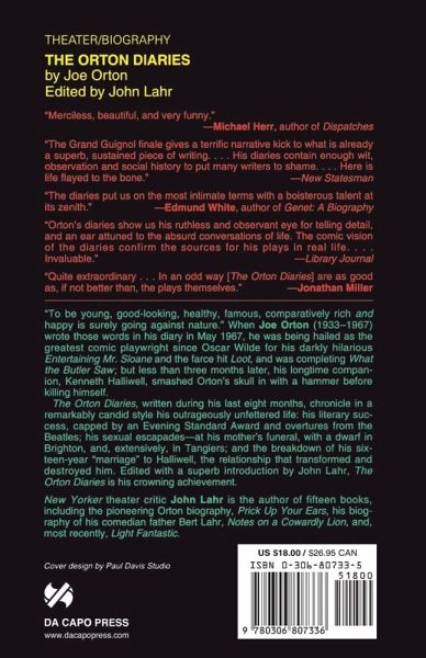 "To be young, good-looking, healthy, famous, comparatively rich, and happy is surely going against nature". When Joe Orton (1933-1967) wrote those words in his diary in May 1967, he was being hailed as the greatest comic playwright since Oscar Wilde for his darkly hilarious Entertaining Mr. Sloane and the farce hit Loot, and was completing What the Butler Saw; but less than three months later, his longtime companion, Kenneth Halliwell, smashed Orton's skull in with a hammer before killing himself. The Orton Diaries, written during his last eight months, chronicle in a remarkably candid style his outrageously unfettered life: his literary success, capped by an Evening Standard Award and overtures from the Beatles; his sexual escapades - at his mother's funeral, with a dwarf in Brighton, and, extensively, in Tangiers; and the breakdown of his sixteen-year "marriage" to Halliwell, the relationship that transformed and destroyed him. Edited with a superb introduction by John Lahr, The Orton Diaries is his crowning achievement.