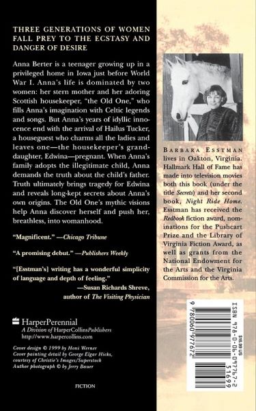 Three generations of women fall prey to the ecstasy and danger of desire. Anna Berter is a teenager growing up in a privileged home in Iowa just before World War I. Anna's life is dominated by two women: her stern mother and her adoring Scottish housekeeper, "the Old One," who fills Anna's imagination with Celtic legends and songs. But Anna's years of idyllic innocence end with the arrival of Hailus Tucker, a houseguest who charms all the ladies and leaves one--the housekeeper's granddaughter, Edwina--pregnant. When Anna's family adopts the illegitimate child, Anna demands the truth about the child's father. Truth ultimately brings tragedy for Edwina and reveals long-kept secrets about Anna's own origins. The Old One's mythic visions help Anna discover herself and push her, breathless, into womanhood.