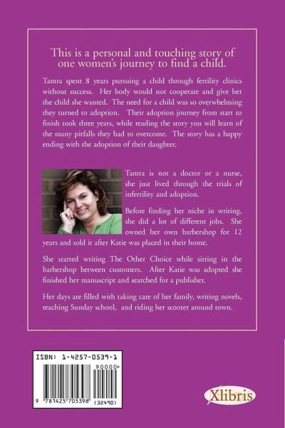 This is a personal and touching story of one women's journey to find a child. Tamra spent 8 years pursuing a child through fertility clinics without success. Her body would not cooperate and give her the child she wanted. The need for a child was so overwhelming they turned to adoption. Their adoption journey from start to finish took three years, while reading the story you will learn of the many pitfalls they had to overcome. The story has a happy ending with the adoption of their daughter.