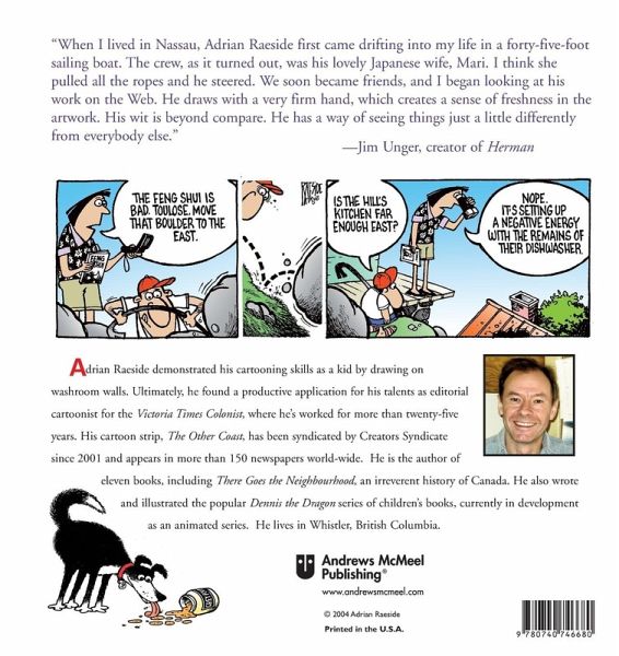 What would road rage in Beverly Hills look like? From the whimsical perspective of The Other Coast creator Adrian Raeside, it would involve a prim-and-proper hurling of a jar of Grey Poupon at the offending driver. The Other Coast: Road Rage in Beverly Hills is the first collection of Adrian Raeside's strip featuring his off-kilter view of contemporary life. Raeside's lighthearted look at culture, politics, fashion, society, and life in general is both insightful and hilarious. Whether it's taking a clever poke at our obsession with wireless phones, our inability to maintain a workout program, or the witty banter of married life, The Other Coast is a bastion of original thinking, wry wit, and out-loud laughs. Much of the humor comes at the expense of Toulose, the eccentric screenwriter, and his cause-seeking wife, Vicki. But the strip also features a colorful cast of repair people, kids, contractors, tech-support goons, agents, pets, and much more. Those enjoying strips that provide more than the "same ol' schtick" are sure to relish a visit to The Other Coast, where folks aren't deep enough to be shallow.
