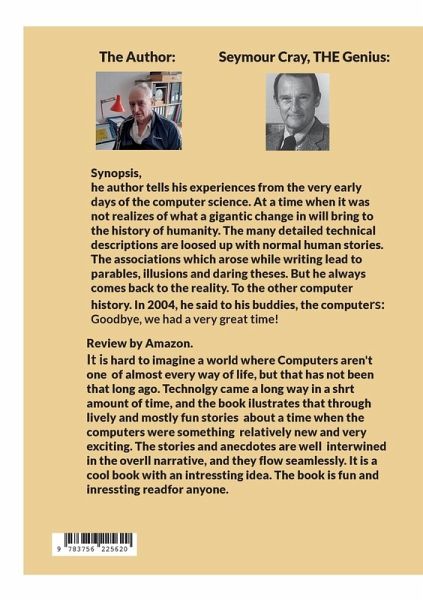 The author tells his experiences from the very early days of the computer science. At a time when it was not realizes of what a gigantic change in will bring to the history of humanity. The many detailed technical descriptions are loosed up with normal human stories. The associations which arose while writing lead to parables, illusions and daring theses. But he always comes back to the reality. To the other computer history. In 2004, he said to his buddies, the computers: Goodbye, we had a very great time!