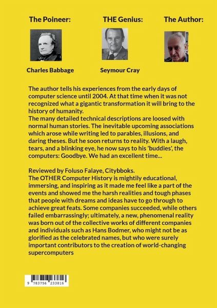 The author tells his experiences from the early days of computer science until 2004. At that time when it was not recognized what a gigantic transformation it will bring to the history of humanity.The many detailed technical descriptions are loosed with normal human stories. The inevitable upcoming associations which arose while writing led to parables, illusions, and daring theses. But he soon returns to reality. With a laugh, tears, and a blinking eye, he now says to his 'buddies', the computers: Goodbye. We had an excellent time...Reviewed by Foluso Falaye, Citybboks.The OTHER Computer History is mightily educational, immersing, and inspiring as it made me feel like a part of the events and showed me the harsh realities and tough phases that people with dreams and ideas have to go through to achieve great feats. Some companies succeeded, while others failed embarrassingly; ultimately, a new, phenomenal reality was born out of the collective works of different companies and individuals such as Hans Bodmer, who might not be as glorified as the celebrated names, but who were surely important contributors to the creation of world-changing supercomputers
