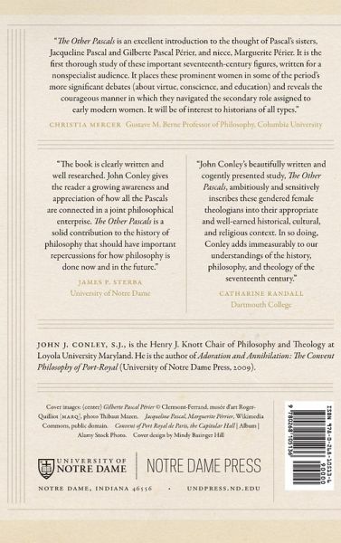 There have been many studies analyzing the philosophy of Blaise Pascal, but this book is the first full-length study of the philosophies of his sisters, Jacqueline Pascal and Gilberte Pascal Périer, and his niece, Marguerite Périer. While these women have long been presented as the disciples, secretaries, correspondents, and nurses of their brother and uncle, each woman developed a distinctive philosophy that is more than auxiliary to the thought of Blaise Pascal. The unique philosophical voice of each Pascal woman is studied in The Other Pascals. As the headmistress of the Port-Royal convent school, Jacqueline Pascal made important contributions to the philosophy of education. Gilberte Pascal Périer wrote the first philosophical biographies of Blaise and Jacqueline. Marguerite Périer defended freedom of conscience against coercion by political and religious superiors. Each of these women authors speaks in a gendered voice, emphasizing the right of women to develop a philosophical and theological culture and to resist commands to blind obedience by paternal, political, or ecclesiastical authorities. The Other Pascals will be of keen interest to readers interested in early modern philosophy, history, literature, and religion. The book will also appeal to those with an interest in women's studies and French studies.