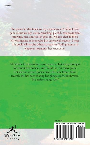 The poems in this book are my experience of God as I have gone about my day: stern, consoling, playful, compassionate, forgiving, just, and the list goes on. What is clear to me is His willingness to be involved in very trivial matters. I hope this book will inspire others to look for God's presence in whatever situations they encounter.