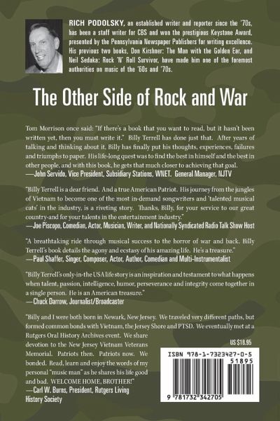The Other Side of Rock and War is Billy Terrell's struggle to save his life, his career, his country and the Vietnamese orphans he left behind. Imagine being penniless, and nearly homeless at the age of 16, forced to quit school and try to find a job with your four front teeth missing. This is Billy Terrell's inspiring story of how he overcame poverty, bullying and the horrors of Vietnam, before his near impossible climb to success as a songwriter, producer and later as a top stand-up comedian. It also reveals Terrell's deeply personal experiences at Mang Lang Orphanage near the village of Tuy Hoa in 1966 which as a soldier, he helped rebuild, and his determination to return to Vietnam and reunite with the nuns and former children of the orphanage. Along the way he has a juicy tale of traveling with Jimi Hendrix, The Doors and Cream in the summer of '68. As a writer/producer he has placed 63 records on the national and international charts. As a producer he rebooted Frankie Avalon's career and produced albums for Helen Reddy, Bobby Rydell and great jazz guitarist Larry Carlton, among many others. As a stand-up comedian he worked with several up and coming stars such as, Adam Sandler, Ray Romano, Drew Carey and Chris Rock during their early days on the circuit.