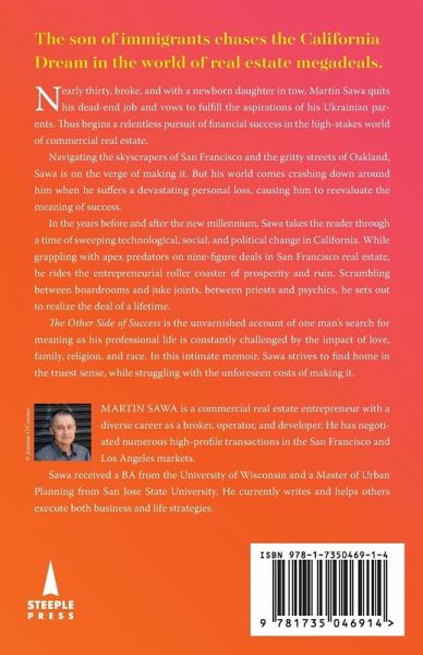 He chased the American Dream. Did his cutthroat journey break him...or see him reach his greatest achievement? Northern California, 1978. Martin Sawa refused to let poverty define his future. After growing up the son of penniless Ukrainian immigrants, the almost-thirty-year-old impulsively quit his nine-to-five to become a real estate salesperson working solely on commission. Determined to prosper despite his bare trickle of income and deteriorating home life, he set out to mold himself into a major player in San Francisco's high-stakes commercial minefield. As Sawa pushed his career forward-making bigger deals at each painstaking step up-he had one hand on the prize he'd dreamed of for years. But with stress driving him to alcoholism and poor choices, it took tragedy to force him to confront the true cost of his sacrifices. Was the financial wealth worth the price of his soul? Laid out in an intimate and passionate memoir, Sawa's honest appraisal of his wins and losses in a volatile time of technological, social, and political change reveals an intensely personal challenge. Serving as a reminder of what really matters in the single-minded grind for excellence, his struggles to be his best self help the rest of us understand that we're often exactly where we're meant to be. The Other Side of Success: Money and Meaning in the Golden State is a raw, in-depth look into a man with something to prove. If you like insider insights into high-level business, overcoming racial boundaries, and the fragile balance between prosperity and ruin, then you'll love Martin Sawa's emotional rollercoaster.
