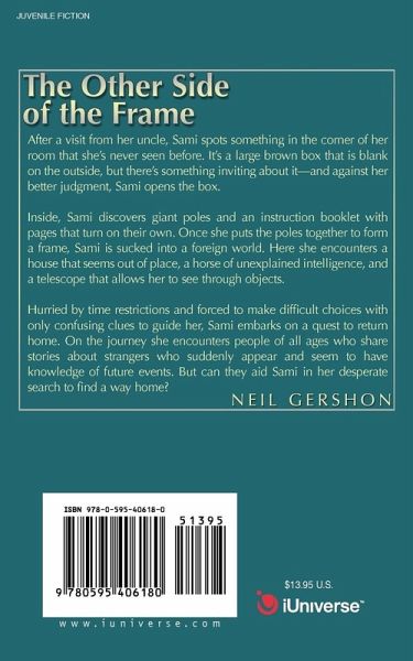 After a visit from her uncle, Sami spots something in the corner of her room that she's never seen before. It's a large brown box that is blank on the outside, but there's something inviting about it-and against her better judgment, Sami opens the box. Inside, Sami discovers giant poles and an instruction booklet with pages that turn on their own. Once she puts the poles together to form a frame, Sami is sucked into a foreign world. Here she encounters a house that seems out of place, a horse of unexplained intelligence, and a telescope that allows her to see through objects. Hurried by time restrictions and forced to make difficult choices with only confusing clues to guide her, Sami embarks on a quest to return home. On the journey she encounters people of all ages who share stories about strangers who suddenly appear and seem to have knowledge of future events. But can they aid Sami in her desperate search to find a way home?