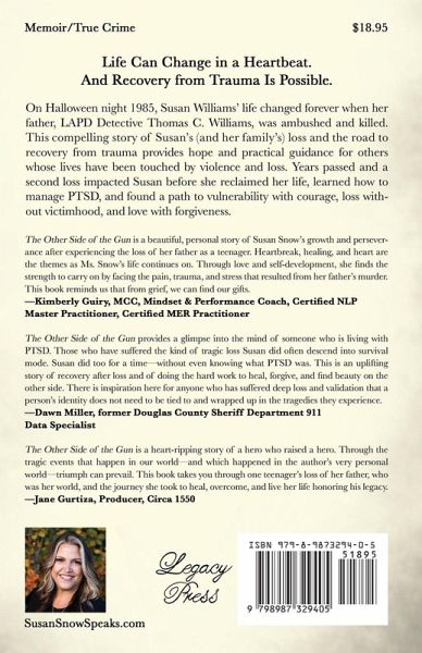 Life Can Change in a Heartbeat. And Recovery from Trauma Is Possible. On Halloween night 1985, Susan Williams' life changed forever when her father, LAPD Detective Thomas C. Williams, was ambushed and killed. This compelling story of Susan's (and her family's) loss and the road to recovery from trauma provides hope and practical guidance for others whose lives have been touched by violence and loss. Years passed and a second loss impacted Susan before she reclaimed her life, learned how to manage PTSD, and found a path to vulnerability with courage, loss without victimhood, and love with forgiveness.