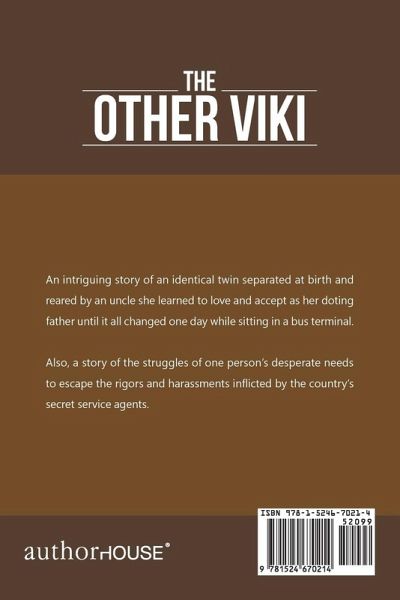 An intriguing story of an identical twin separated at birth and reared by an uncle she learned to love and accept as her doting father until it all changed one day while sitting in a bus terminal. Also, a story of the struggles of one person’s desperate needs to escape the rigors and harassments inflicted by the country’s secret service agents.