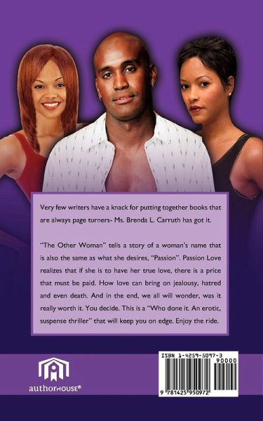 Very few writers have a knack for putting together books that are always page turners- Ms. Brenda L. Carruth has got it. "The Other Woman" tells a story of a woman's name that is also the same as what she desires, "Passion". Passion Love realizes that if she is to have her true love, there is a price that must be paid. How love can bring on jealousy, hatred and even death. And in the end, we all will wonder, was it really worth it. You decide. This is a "Who done it. An erotic, suspense thriller" that will keep you on edge. Enjoy the ride.
