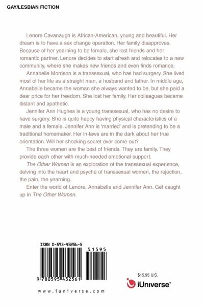 Lenore Cavanaugh is African-American, young and beautiful. Her dream is to have a sex change operation. Her family disapproves. Because of her yearning to be female, she lost friends and her romantic partner. Lenore decides to start afresh and relocates to a new community, where she makes new friends and even finds romance. Annabelle Morrison is a transsexual, who has had surgery. She lived most of her life as a straight man, a husband and father. In middle age, Annabelle became the woman she always wanted to be, but she paid a dear price for her freedom. She lost her family. Her colleagues became distant and apathetic. Jennifer Ann Hughes is a young transsexual, who has no desire to have surgery. She is quite happy having physical characteristics of a male and a female. Jennifer Ann is 'married' and is pretending to be a traditional homemaker. Her in-laws are in the dark about her true orientation. Will her shocking secret ever come out? The three women are the best of friends. They are family. They provide each other with much-needed emotional support. The Other Women is an exploration of the transsexual experience, delving into the heart and psyche of transsexual women, the rejection, the pain, the yearning. Enter the world of Lenore, Annabelle and Jennifer Ann. Get caught up in The Other Women.