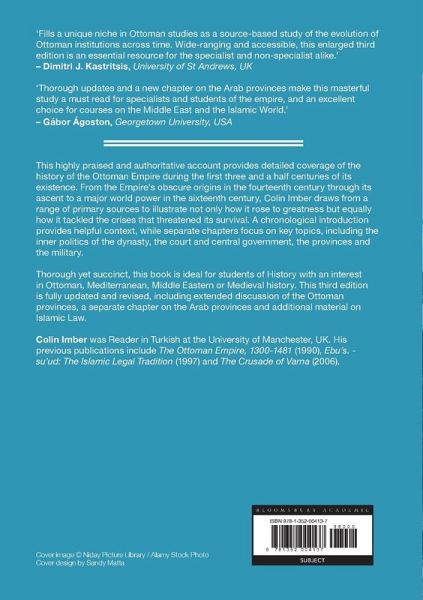 This highly-praised and authoritative account surveys the history of the Ottoman Empire from its obscure origins in the fourteenth century, through its rise to world-power status in the sixteenth century, to the troubled times of the seventeenth century. Going beyond a simple narrative of Ottoman achievements and key events, Colin Imber uses original sources and research, as well as the rapidly growing body of modern scholarship on the subject, to show how the Sultans governed their realms and the limits on their authority. A helpful chronological introduction provides the context, while separate chapters deal with the inner politics of the dynasty, the court and central government, the provinces, the law courts and legal system, and the army and fleet. Revised, updated and expanded, this new edition now also features a separate chapter on the Arab provinces and incorporates the most recent developments in the field throughout.
