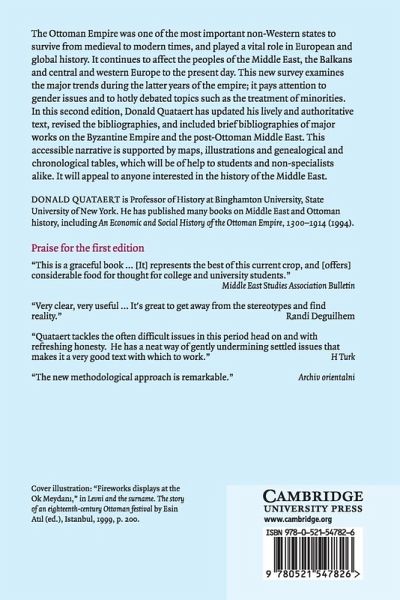 The Ottoman Empire was one of the most important non-Western states to survive from medieval to modern times, and played a vital role in European and global history. It continues to affect the peoples of the Middle East, the Balkans and central and western Europe to the present day. This new survey examines the major trends during the latter years of the empire; it pays attention to gender issues and to hotly-debated topics such as the treatment of minorities. In this second edition, Donald Quataert has updated his lively and authoritative text, revised the bibliographies, and included brief biographies of major figures on the Byzantines and the post Ottoman Middle East. This accessible narrative is supported by maps, illustrations and genealogical and chronological tables, which will be of help to students and non-specialists alike. It will appeal to anyone interested in the history of the Middle East.