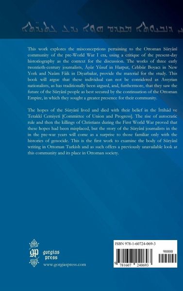 Based on the works of Süryânî journalists such as Naûm Fâik, this book argues against the traditional view of the Ottoman Süryânî community: rather than an early generation of Assyrian nationalists, the early-twentieth century intellectuals were supporters of the Ottoman state.