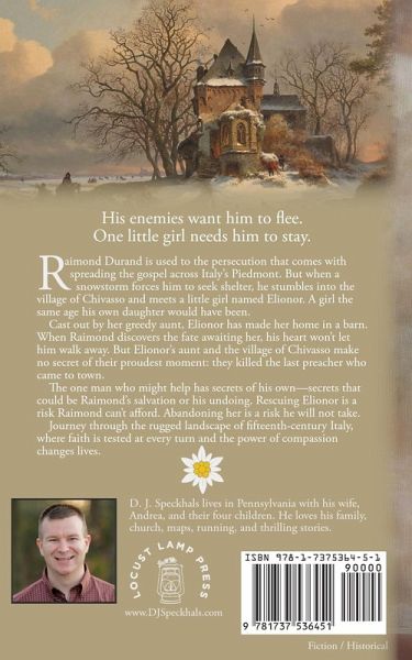 His enemies want him to flee. One little girl needs him to stay. Raimond Durand is used to the persecution that comes with spreading the gospel across Italy's Piedmont. But when a snowstorm forces him to seek shelter, he stumbles into the village of Chivasso and meets a little girl named Elionor. A girl the same age his own daughter would have been. Cast out by her greedy aunt, Elionor has made her home in a barn. When Raimond discovers the fate awaiting her, his heart won't let him walk away. But Elionor's aunt and the village of Chivasso make no secret of their proudest moment: they killed the last preacher who came to town. The one man who might help has secrets of his own-secrets that could be Raimond's salvation or his undoing. Rescuing Elionor is a risk Raimond can't afford. Abandoning her is a risk he will not take. Journey through the rugged landscape of fifteenth-century Italy, where faith is tested at every turn and the power of compassion changes lives.