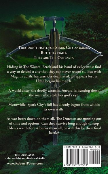 They don't fight for Spark City anymore. But they fight. They are The Outcasts. Hiding in The Wastes, Erroh and his band of exiles must find a way to defend a city that they can never return to. But with Magnus adrift, his warriors decimated, all appears lost as Uden begins his march. A world away, the deadly assassin, Aurora, is hunting down the man who stole her god's eye. Meanwhile, Spark City's fall has already begun from within its own walls. As war bears down on them all, The Outcasts are running out of time and options. Can they survive long enough to stop Uden's war before it burns them all, or will this be their final battle? Spark City Cycle continues with The Outcasts; the eagerly awaited third installment to #1 bestselling Spark City, from fantasy author Robert J Power.