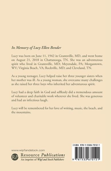 In Memory of Lucy Ellen Bender Lucy was born on June 11, 1942 in Grantsville, MD, and went home on August 21, 2018 in Chattanooga, TN. She was an adventurous spirit who lived in Grantsville, MD; Meyersdale, PA; Morgantown, WV; Virginia Beach, VA; Rockville, MD; and Cleveland, TN. As a young teenager, Lucy helped raise her three younger sisters when her mother was ill. As a young woman, she overcame many challenges as she raised her three boys who inherited her adventurous spirit. Lucy had a deep faith in God and selflessly did a tremendous amount of volunteer and charitable work wherever she…mehr