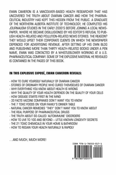 The Ovarian Cancer "Miracle" Ewan Cameron is a Vancouver-based journalist that has focused on exposing the lies and disinformation tactics of the pharmaceutical industry for over a decade. A graduate of the Northern Alberta Institute of Technology, he completed his journalism studies in the early 2000's before joining a local newspaper, where he became disillusioned by his editor's refusal to publish health-related news stories. The reason? They would upset their corporate clients on which the newspaper depended for advertising revenue. After setting up his own blog under a pen name, Ewan was contacted by a whistleblower working at a U.S. pharmaceutical company. Some of the shocking material he revealed is contained in the pages of this book. In this explosive exposé The Ovarian Cancer "Miracle", Ewan Cameron reveals How to Heal Yourself From Ovarian Cancer Naturally, How Disease Starts In The Mind, The 7 Toxic Foods On Your Family's Dinner Table, Natural Cancer Remedies "They" Don't Want You To Know About, The Truth About So-Called 'Autoimmune' Disorders, How To Live To 100 and Beyond (Little-Known Longevity Secrets) ...and much, much more!