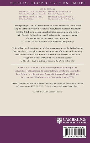 In this compelling work, Sascha Auerbach offers a bold new historical interpretation of late-stage slavery, its long-term legacies, and its entanglement with the development of the modern state. In the wake of abolition, from the Caribbean to southern Africa to Southeast Asia, a fusion of government authority and private industry replaced the iron chains of slavery with equally powerful fetters of law and regulation. This 'overseer-state' helped move, often through deceptive and coercive methods, millions of Indian and Chinese indentured laborers across Britain's imperial possessions. With a perspective that ranges from Parliament to the plantation, the book brings to light the fascinating and terrifying history of the world's first truly global labor system, those who struggled under its heavy yoke, and the bitter legacies left in its wake.