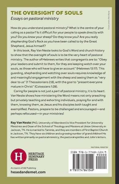 How do you understand pastoral ministry? What is the centre of your calling as a pastor? Is it difficult for your people to speak directly with you? Do you know your sheep? Do they know you? Are you really shepherding God's flock as you have been called to by the Great Shepherd, Jesus himself? In this book, Ray Van Neste looks to God's Word and church history to show that the oversight of souls is to be the very heart of pastoral ministry. The author of Hebrews writes that congregants are to: "Obey your leaders and submit to them, for they are keeping watch over your souls, as those who will have to give an account" (Hebrews 13:17). This guarding, shepherding and watching over souls requires knowledge of and meaningful engagement with the sheep and seeing them as "very dear to us" (1 Thessalonians 2:8), with the goal to "present everyone mature in Christ" (Colossians 1:28). Caring for people is not just a part of pastoral ministry, it is its heart. Van Neste shows how ministering the Word means not only preaching but privately teaching and exhorting individuals, praying for and with them, knowing them, as Jesus and his disciples both taught and exemplified. Pastors, prepare to be challenged and encouraged-and perhaps refocused-in your ministries!