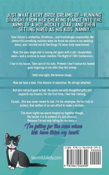 Just what every bride dreams of-running straight from her cheating fiancé into the arms of a hot hockey star... and then getting hired as his kids' nanny. Tyler Falcon is protective, flirtatious...and frustratingly responsible. We almost did something reckless when he found me alone in my wedding dress, and I blurted out all the things I'd never truly experienced. Now, the sexy single dad is saving me again with a job I desperately need-and a promise to never mention The Night of 1001 Confessions. I live in his house. Take care of his kids. Pretend I don't notice his heated gaze lingering on me after they fall asleep. Until one night, the tension snaps. Now we have a deal. Five lessons in seduction. No strings attached. But he's not just good in bed. He spoils me with thoughtful gifts and supports my dreams. For the first time, I feel like I belong. Except...this was never meant to last. I'm his employee. He has kids to protect. And neither of us can afford to make a mistake. The more nights we spend tangled up together though, the harder it is to pretend it's just physical. Because I'm not only falling for my boss-I'm falling for the man whose kids have stolen my heart.