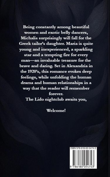 Being constantly among beautiful women and exotic belly dancers, Michalis surprisingly will fall for the Greek tailor's daughter. Maria is quite young and inexperienced, a sparkling star and a tempting fire for every man-an invaluable treasure for the brave and daring. Set in Alexandria in the 1920's, this romance evokes deep feelings, while unfolding the human drama and human relationships in a way that the reader will remember forever. The Lido nightclub awaits you! Welcome! 'Well! What is going on? Will you tell me what this strange man wanted here?'Boyas, seeing the owner of Lido closing the glass-door of the café, had returned to his seat where the smoke from the cigarette of the soft-spoken dark man was still smoldering in the ashtray. His face was still red, his lips trembling slightly, trying to contain a new torrent of laughter.