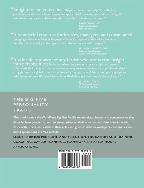 This book covers the WorkPlace Big Five Profile supertraits, subtraits and competencies that describe how people respond to stress, adjust to their environment, determine interests, work with others, and establish their roles and goals. It includes workplace case studies and useful applications in areas such as: leadership, job profiling and selection, education and training, coaching, career planning, teamwork, and after-hours applications.