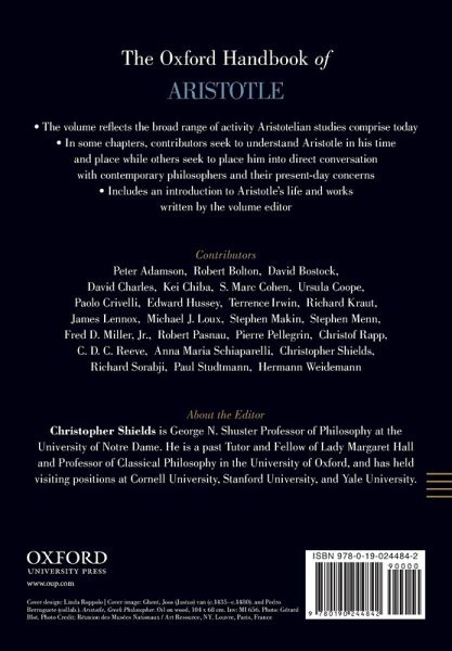 The Oxford Handbook of Aristotle reflects the lively international character of Aristotelian studies, drawing contributors from Europe, North America, and Asia.