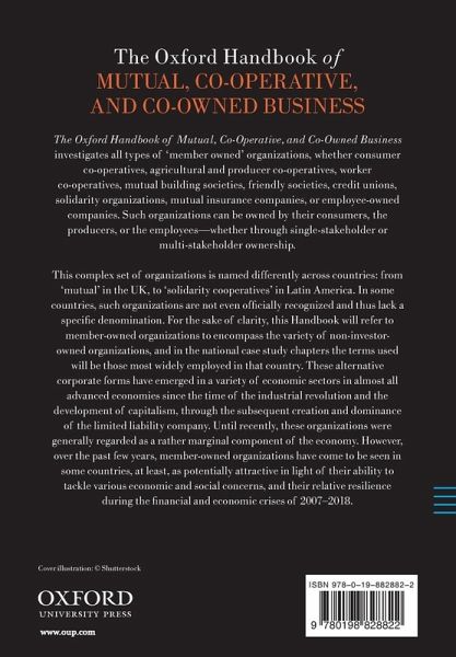The Oxford Handbook of Mutual, Co-Operative, and Co-Owned Business investigates all types of 'member owned' organizations, whether consumer co-operatives, agricultural and producer co-operatives, worker co-operatives, mutual building societies, friendly societies, credit unions, solidarity organizations, mutual insurance companies, or employee-owned companies. Such organizations can be owned by their consumers, the producers, or the employees - whether through single-stakeholder or multi-stakeholder ownership. This complex set of organizations is named differently across countries: from 'mutual' in the UK, to 'solidarity cooperatives' in Latin America. In some countries, such organizations are not even officially recognized and thus lack a specific denomination. For the sake of clarity, this Handbook will refer to member-owned organizations to encompass the variety of non-investor-owned organizations, and in the national case study chapters the terms used will be those most widely employed in that country. These alternative corporate forms have emerged in a variety of economic sectors in almost all advanced economies since the time of the industrial revolution and the development of capitalism, through the subsequent creation and dominance of the limited liability company. Until recently, these organizations were generally regarded as a rather marginal component of the economy. However, over the past few years, member-owned organizations have come to be seen in some countries, at least, as potentially attractive in light of their ability to tackle various economic and social concerns, and their relative resilience during the financial and economic crises of 2007-2017.