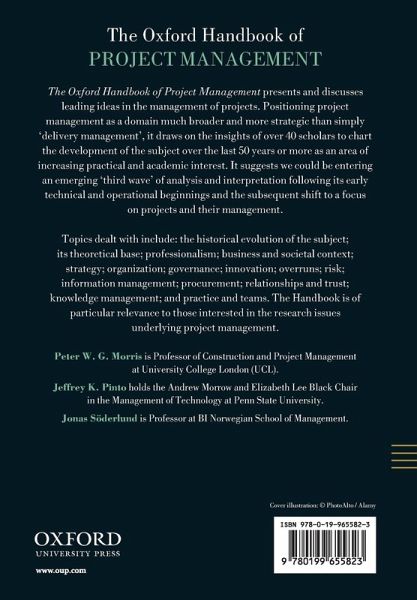 Peter W.G. Morris is Professor and Head of the School of Construction and Project Management at University College London (UCL). He is the author of over 110 papers and several books on the management of projects. A previous Chairman of the Association for Project Management, he was awarded the Project Management Institute's 2005 Research Achievement Award, IPMA's 2009 Research Award, and APM's 2008 Sir Monty Finniston Life-Time Achievement Award. Jeffrey K. Pinto holds the Andrew Morrow and Elizabeth Lee Black Chair in the Management of Technology at Penn State University. He is the author or editor of 23 books and over 120 scientific papers. Dr. Pinto is a two-time recipient of the Distinguished Contribution Award from the Project Management Institute (1997, 2001) for outstanding service to the project management profession. He received PMI's Research Achievement Award in 2009. Jonas Söderlund is Professor at BI Norwegian School of Management and responsible for its executive education within the area of project management. He is a founding member of the KITE Research Group (Knowledge Integration and Innovation in Transnational Enterprise) based at Linköping University. He has researched and published widely on the management and organization of projects and project-based firms and the evolution of project competence.