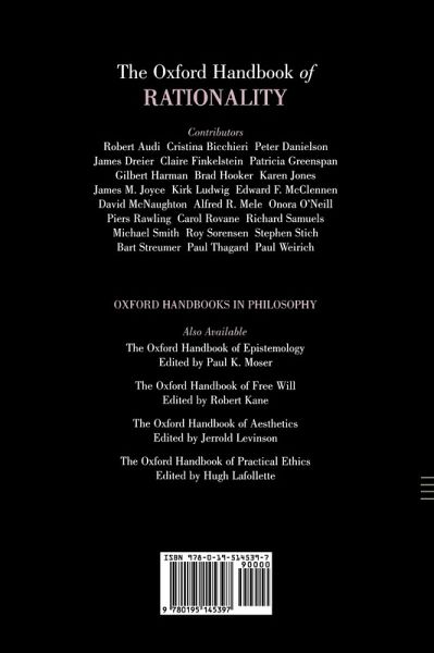 Rationality has long been a central topic in philosophy, crossing standard divisions and categories. It continues to attract much attention in published research and teaching by philosophers as well as scholars in other disciplines, including economics, psychology, and law. The Oxford Handbookof Rationality is an indispensable reference to the current state of play in this vital and interdisciplinary area of study. Twenty-two newly commissioned chapters by a roster of distinguished philosophers provide an overview of the prominent views on rationality, with each author also developing a unique and distinctive argument.
