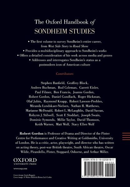 The Oxford Handbook of Sondheim Studies offers a series of cutting-edge essays on the most important and compelling topics in the growing field of Sondheim Studies. Focusing on broad groups of issues relating to the music and the production of Sondheim works, rather than on biographical questions about the composer himself, the handbook represents a cross-disciplinary introduction to comprehending Sondheim in musicological, theatrical, and socio-cultural terms. This collection of never-before published essays addresses issues of artistic method and musico-dramaturgical form, while at the same time offering close readings of individual shows from a variety of analytical perspectives. The handbook is arranged into six broad sections: issues of intertextuality and authorship; Sondheim's pioneering work in developing the non-linear form of the concept musical; the production history of Sondheim's work; his writing for film and television; his exploitation and deployment of a wide range of musical genres; and how interpretation through key critical lenses (including sociology, history, and feminist and queer theory) establishes his position in a broader cultural context.