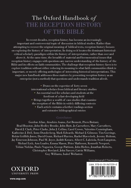 This wide-ranging volume looks at the reception history of the Bible's many texts; Part I surveys the outline, form, and content of twelve key biblical books that have been influential in the history of interpretation. Part II offers a series of in-depth case studies of the interpretation of particular biblical passages or books.