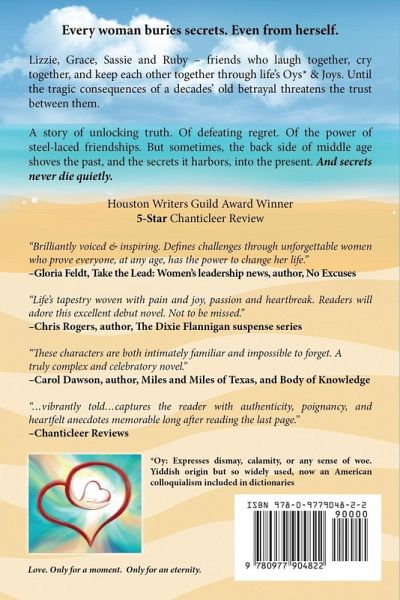 Every woman buries secrets. Even from herself. Lizzie, Grace, Sassie and Ruby - friends who laugh together, cry together, and keep each other together through life's Oys* & Joys. Until the tragic consequences of a decades' old betrayal threatens the trust between them. A story of unlocking truth. Of defeating regret. Of the power of steel-laced friendships. But sometimes, the back side of middle age shoves the past, and the secrets it harbors, into the present. And secrets never die quietly. Houston Writers Guild Award Winner¿¿ 5-Star Chanticleer Review Sassie's Wine List, Ruby's Italian Feast recipes, and Lizzie's Heart to Heart picture (Love. Only for a moment. Only for an eternity.) can be found at www.marciafeldt.com. *Oy or Oy vey: Terms to express exasperation, dismay, calamity or any other sense of woe. Yiddish origin but so widely used, now integrated into American colloquialisms, and in dictionaries around the world.