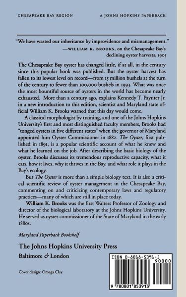 The Chesapeake Bay oyster has changed little, if at all, in the century since this popular book was published. But the oyster harvest has fallen to its lowest level on record - from 15 million bushels at the turn of the century to fewer than 100,000 bushels in 1993. What was once the most bountiful source of oysters in the world has become nearly exhausted. More than a century ago, explains Kennedy T. Paynter Jr. in a new introduction to this edition, scientist and Maryland state official William K. Brooks warned that this day would come. A classical morphologist by training, and one of the Johns Hopkins University's first and most distinguished faculty members, Brooks had "tonged oysters in five different states" when the governor of Maryland appointed him Oyster Commissioner in 1882. The Oyster, first published in 1891, is a popular scientific account of what he knew and what he learned on the job. After describing the basic biology of the oyster, Brooks discusses its tremendous reproductive capacity, what it eats, how it lives, why it thrives in the Bay, and what role it plays in the Bay's ecology. But The Oyster is more than a simple biology test. It is also a critical scientific review of oyster management in the Chesapeake Bay, commenting on and criticizing contemporary laws and regulatory practices - many of which are still in place today.
