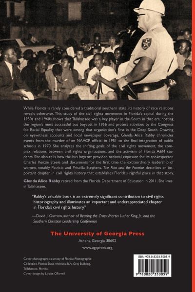 While Florida is rarely considered a traditional southern state, its history of race relations reveals otherwise. This study of the civil rights movement in Florida's capital during the 1950s and 1960s shows that Tallahassee was a key player in the South in that era, hosting the region's most successful bus boycott in 1956 and protest activities by the Congress for Racial Equality that were among that organization's first in the Deep South. Drawing on eyewitness accounts and local newspaper coverage, Glenda Alice Rabby chronicles events from the murder of an NAACP official in 1951 to the final integration of public schools in 1970. She analyses the shifting goals of the civil rights movement, the complex relations between civil rights organizations, and the activism of Florida A&M students. She also tells how the bus boycott provided national exposure for its spokesperson Charles Kenzie Steele and documents for the first time the extraordinary leadership of women, notably Patricia and Priscilla Stephens. The Pain and the Promise describes an important chapter in civil rights history that established Florida's rightful place in that story.