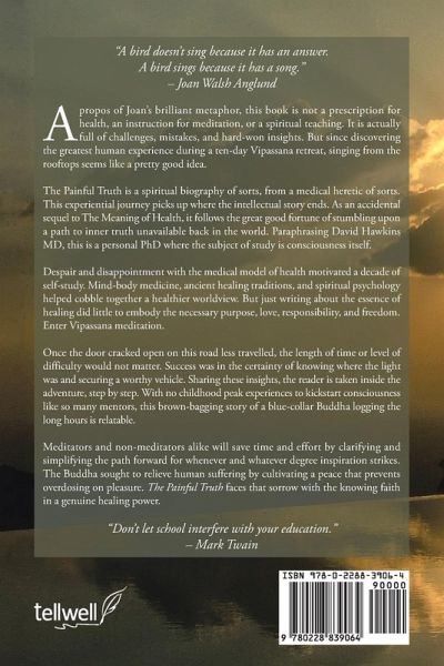 "A bird doesn't sing because it has an answer A bird sings because it has a song" -Joan Walsh Anglund Apropos of Joan's brilliant metaphor, this book is not a prescription for health, an instruction for meditation, or a spiritual teaching. It is actually full of challenges, mistakes, and hard-won insights. But since discovering the greatest human experience during a ten-day Vipassana retreat, singing from the rooftops seems like a pretty good idea. The Painful Truth is a spiritual biography of sorts, from a medical heretic of sorts. This experiential journey picks up where the intellectual story ends. As an accidental sequel to The Meaning of Health, it follows the great good fortune of stumbling upon a path to inner truth unavailable back in the world. Paraphrasing David Hawkins MD, this is a personal PhD where the subject of study is consciousness itself. Despair and disappointment with the medical model of health motivated a decade of self-study. Mind-body medicine, ancient healing traditions, and spiritual psychology helped cobble together a healthier worldview. But just writing about the essence of healing did little to embody the necessary purpose, love, responsibility, and freedom. Enter Vipassana meditation. Once the door cracked open on this road less travelled, the length of time or level of difficulty would not matter. Success was in the certainty of knowing where the light was and securing a worthy vehicle. Sharing these insights, the reader is taken inside the adventure, step by step. With no childhood peak experiences to kickstart consciousness like so many mentors, this brown-bagging story of a blue-collar Buddha logging the long hours is relatable. Meditators and non-meditators alike will save time and effort by clarifying and simplifying the path forward for whenever and whatever degree inspiration strikes. The Buddha sought to relieve human suffering by cultivating a peace that prevents overdosing on pleasure. The Painful Truth faces that sorrow with the knowing faith in a genuine healing power. "Don't let school interfere with your education." -Mark Twain