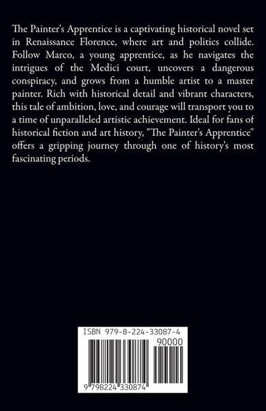 The Painter's Apprentice is a captivating historical novel set in Renaissance Florence, where art and politics collide. Follow Marco, a young apprentice, as he navigates the intrigues of the Medici court, uncovers a dangerous conspiracy, and grows from a humble artist to a master painter. Rich with historical detail and vibrant characters, this tale of ambition, love, and courage will transport you to a time of unparalleled artistic achievement. Ideal for fans of historical fiction and art history, "The Painter's Apprentice" offers a gripping journey through one of history's most fascinating periods.