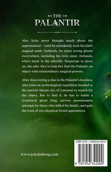 Alex Scire never thought much about the supernatural - until he mistakenly took his dad's magical ankh. Suddenly, he starts seeing ghosts everywhere, including his twin sister, Deborah, who's stuck in the afterlife. Desperate to move on, she asks Alex to help her find the Palantir, an object with extraordinary magical powers. After discovering a clue to the Palantir's location, Alex joins an archeological expedition headed to the ancient Mayan city of Lamanai to search for the object. But to find it, he has to battle a tyrannical ghost king, survive assassination attempts by those who killed his family, and gain the trust of two skeptical Druid apprentices. Young adult; fantasy; ghosts; magic; historical; action adventure; coming of age