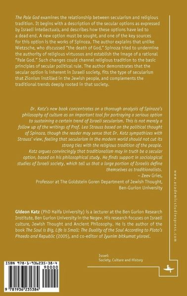 The Pale God examines the relationship between secularism and religious tradition. It begins with a description of the secular options as expressed by Israeli intellectuals, and describes how these options have led to a dead end. A new option must be sought, and one of the key sources for this option is the works of Spinoza. The author explains that unlike Nietzsche, who discussed "the death of God," Spinoza tried to undermine the authority of religious virtuosos and establish the image of a rational "Pale God." Such changes could channel religious tradition to the basic principles of secular political rule. The author demonstrates that the secular option is inherent in Israeli society, fits the type of secularism that Zionism instilled in the Jewish people, and complements the traditional trends deeply rooted in that society.
