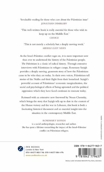 Rosemary Sayigh is a social anthropologist, researcher and author. She has been based in Beirut for several decades, and has spent a lifetime researching the impact of the Israel-Palestine conflict on Palestinian refugees. She is also the author of Too Many Enemies: The Palestinian Experience in Lebanon (Zed Books, 1994). She is the 2023 winner of the Lifetime Achievement Award by the Palestine Book Awards.