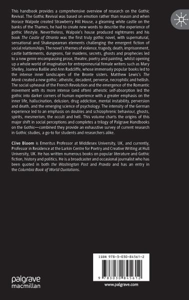 This handbook provides a comprehensive overview of research on the Gothic Revival. The Gothic Revival was based on emotion rather than reason and when Horace Walpole created Strawberry Hill House, a gleaming white castle on the banks of the Thames, he had to create new words to describe the experience of gothic lifestyle. Nevertheless, Walpole's house produced nightmares and his book The Castle of Otranto was the first truly gothic novel, with supernatural, sensational and Shakespearean elements challenging the emergent fiction of social relationships. The novel's themes of violence, tragedy, death, imprisonment, castle battlements, dungeons, fair maidens, secrets, ghosts and prophecies led to a new genre encompassing prose, theatre, poetry and painting, whilst opening up a whole world of imagination for entrepreneurial female writers such as Mary Shelley, Joanna Baillie and Ann Radcliffe, whose immensely popular books led to the intense inner landscapes of the Bronte sisters. Matthew Lewis's The Monk created a new gothic: atheistic, decadent, perverse, necrophilic and hellish. The social upheaval of the French Revolution and the emergence of the Romantic movement with its more intense (and often) atheistic self-absorption led the gothic into darker corners of human experience with a greater emphasis on the inner life, hallucination, delusion, drug addiction, mental instability, perversion and death and the emerging science of psychology. The intensity of the German experience led to an emphasis on doubles and schizophrenic behaviour, ghosts, spirits, mesmerism, the occult and hell. This volume charts the origins of this major shift in social perceptions and completes a trilogy of Palgrave Handbooks on the Gothic-combined they provide an exhaustive survey of current research in Gothic studies, a go-to for students and researchers alike.